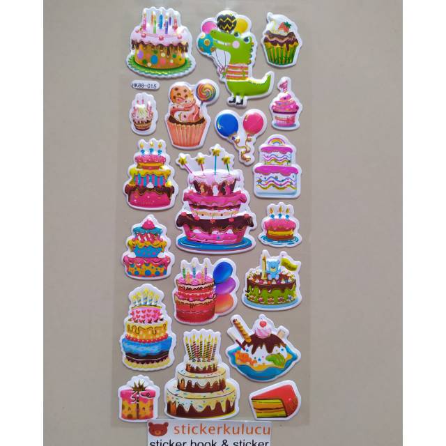 Stiker happy birthday tempel mika kotak box ulang tahun aksesoris cut balon ultah pesta party.